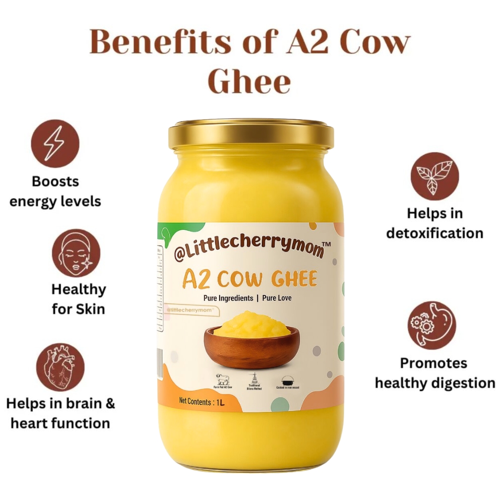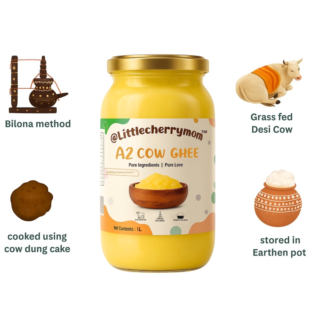 Littlecherrymom’s A2 Bilona Cow Ghee is prepared using traditional bilona method. It is pure, organic and healthy for kids.