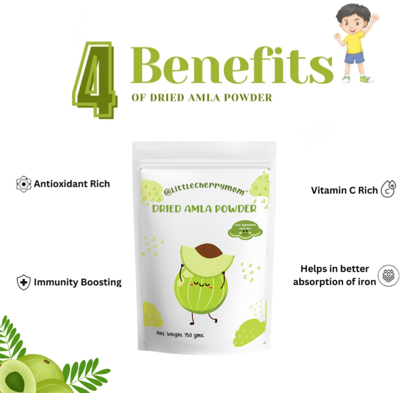Indian gooseberry or Amla is an amazing immunity booster for kids and a power house of nutrients. Our Amla powder is made up of 100% pure and sundried amla. It is the best source of Vitamin C which helps in absorption of Iron. It is a natural immunity booster for kids and is a very good antioxidant which helps in fighting diseases. It is nourishing and healthy and provides nourishment to hair and skin of kids. No added preservatives, artificial flavors, sugar and salt.