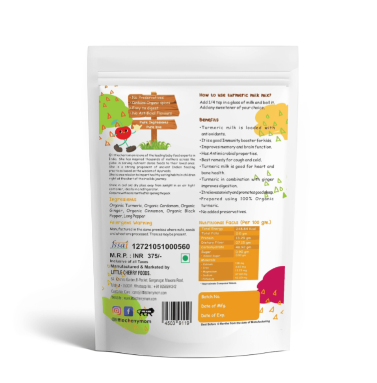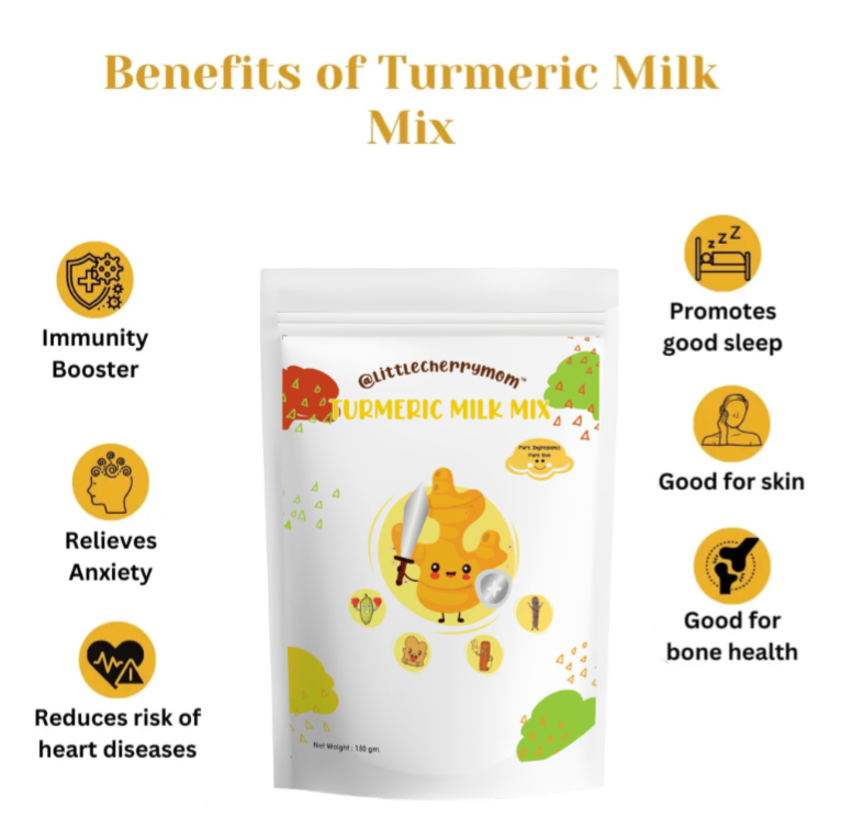 Add a teaspoonful of Turmeric milk mix to a cup of hot milk along with honey or any natural sweetener and let the child enjoy its goodness.